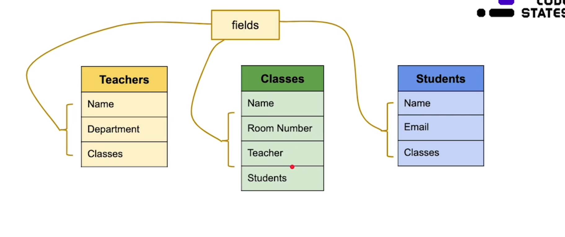 - 각 entities마다 담고 있는 값(Name, Department, Classes...) 들은 fields라고 한다.