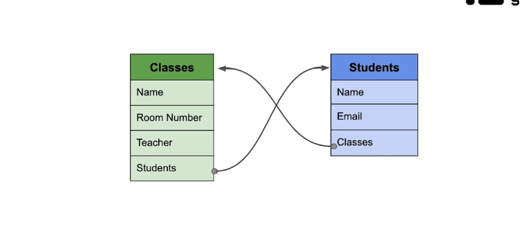 - 각 수업은 여러 명의 학생들로 구성되어있고, 그 학생 또한 여러 개의 수업을 듣는다. 이러한 관계를 N: N (many to many, 다대다)라고 표현할 수 있다.