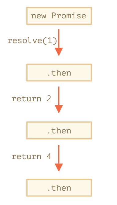 프라미스 체이닝이 가능한 이유는 promise.then을 호출하면 프라미스가 반환되기 때문이고 프라미스가 반환되기 때문에 .then을 호출할 수 있다.
